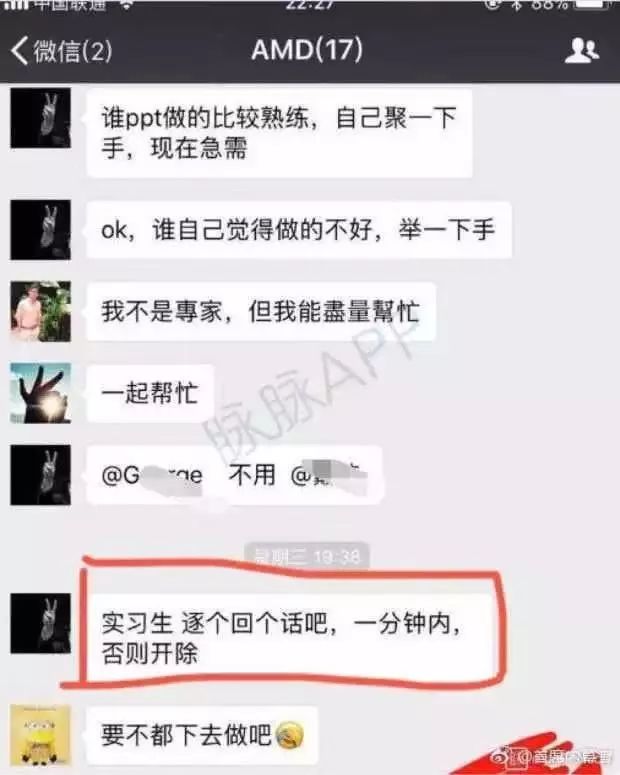 后来他又要求实习生帮忙做PPT,见响应的不多,冒了一句: