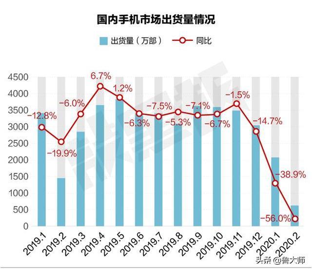 而中国信通院近来发布的《2020年2月国内手机商场运转剖析陈述》显现,2月国内手机全体出货量只要638.4万部,同比下降56%。其间,国产品牌手机出货量共585.8万部,同比下降55.3%。